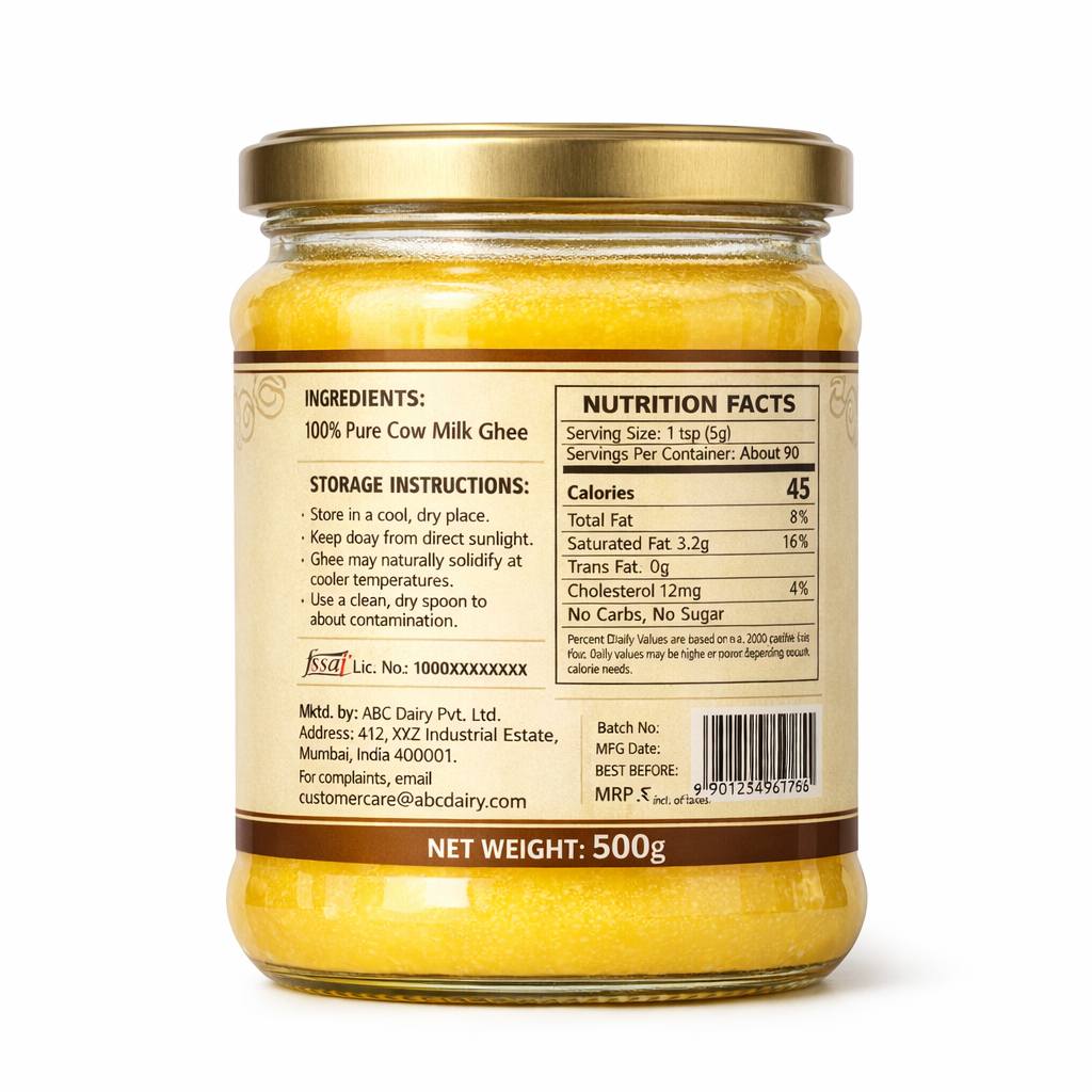 - PACKAGE CONTENT: A2 Gir Cow Ghee; Quantity: 500ML; Diet Type: Vegetarian; Shelf Life: 365 Days. Our desi Gir Cow Ghee is proudly made in India.